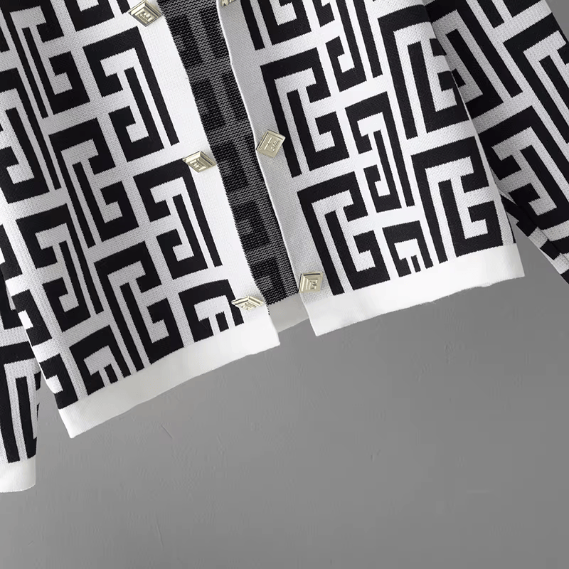 Avery | Chic Retro Maze Plaid O-Collar 3-Piece Suit